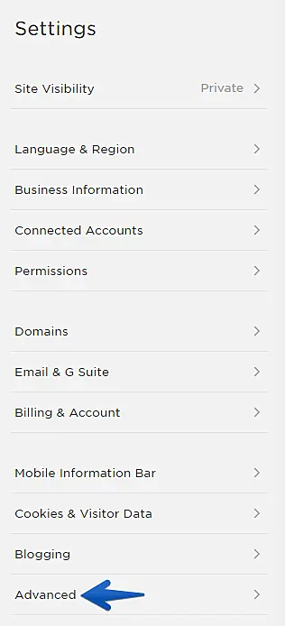 Next, go to the Advanced section.