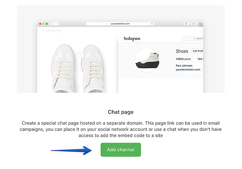 Done! You can copy the link in channel’s settings > Installation. You can as well customize chat’s design, triggers, etc.