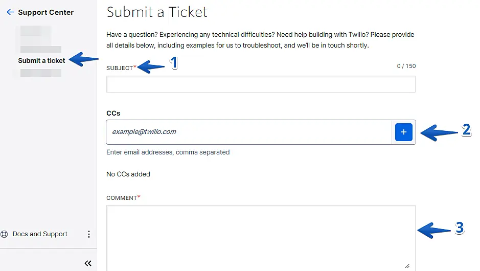 - CCs: It's a targeted field to add emails so that Twilio support can contact you through them. In addition to your main account email, of course.
