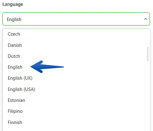 Under "Language", choose the language for your template message