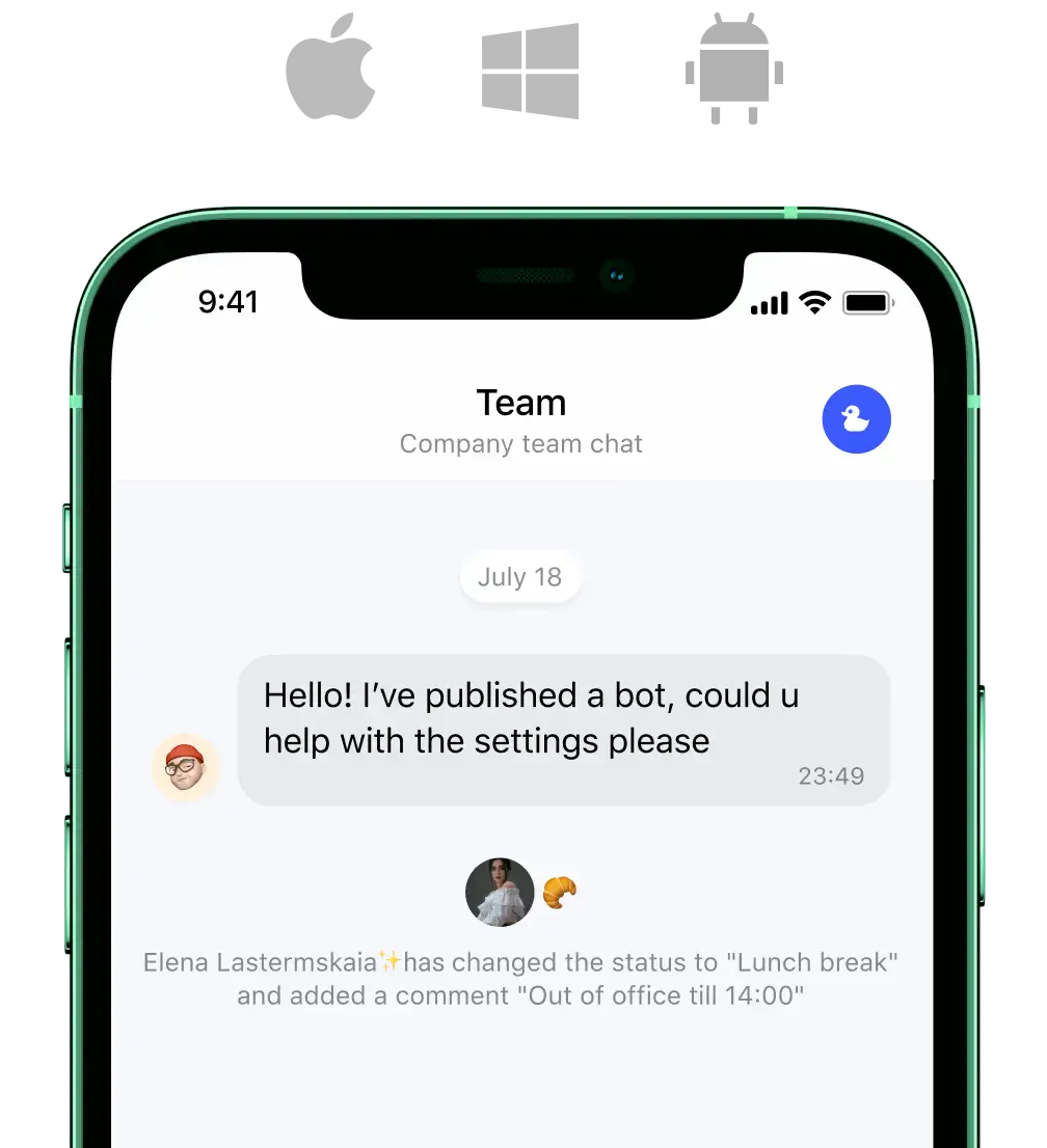 Chat with your teammates anywhere - in a mobile app or on a PC